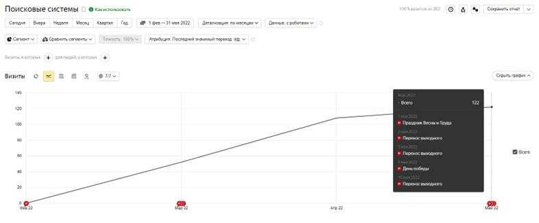 Даже без подключенного коллтрекинга мы получили 34 заявки из поисковых систем, конверсия сайта составила 9%.